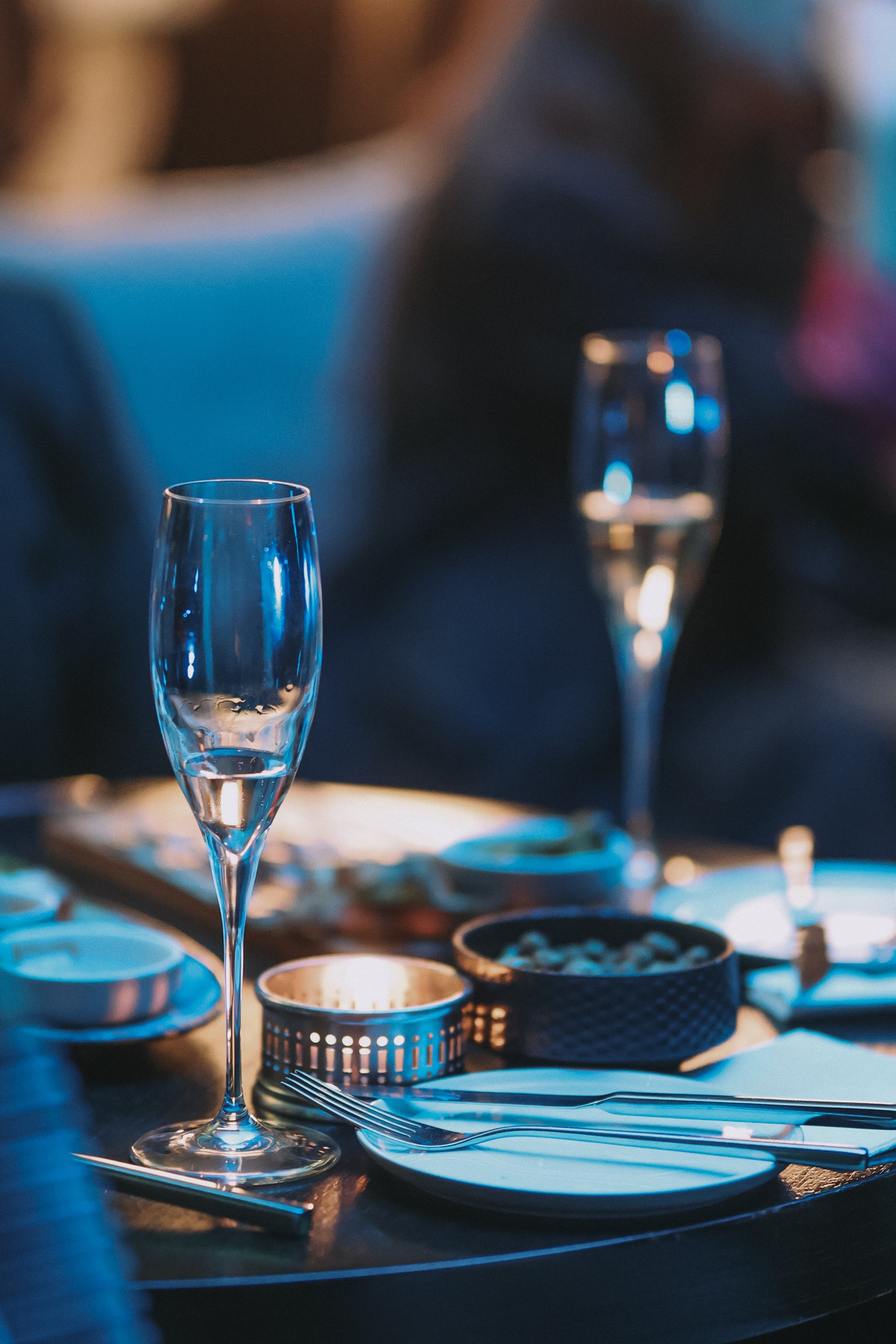 Half finished glasses of Charles Heidseick Champagne , image courtesy of Upper House ,Shanghai